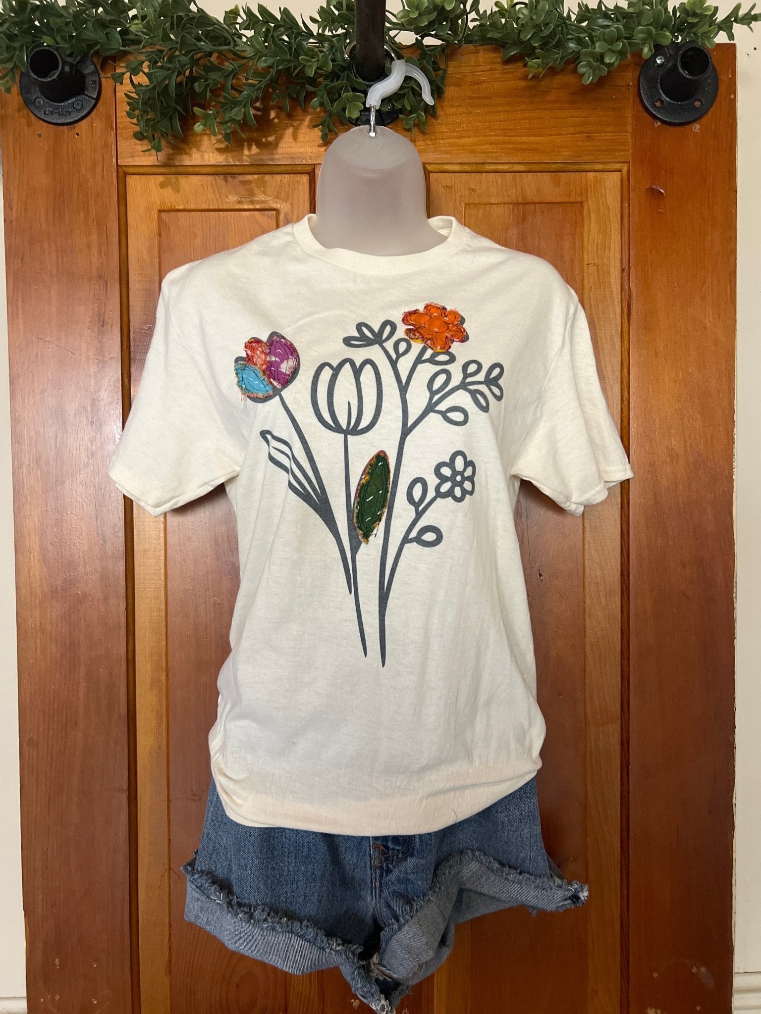 "Add a touch of playful charm to your SPRING WARDROBE with our DOODLE FLOWERS graphic tee. This versatile tee pairs perfectly with any outfit, from camo or leopard to all the denim colors....