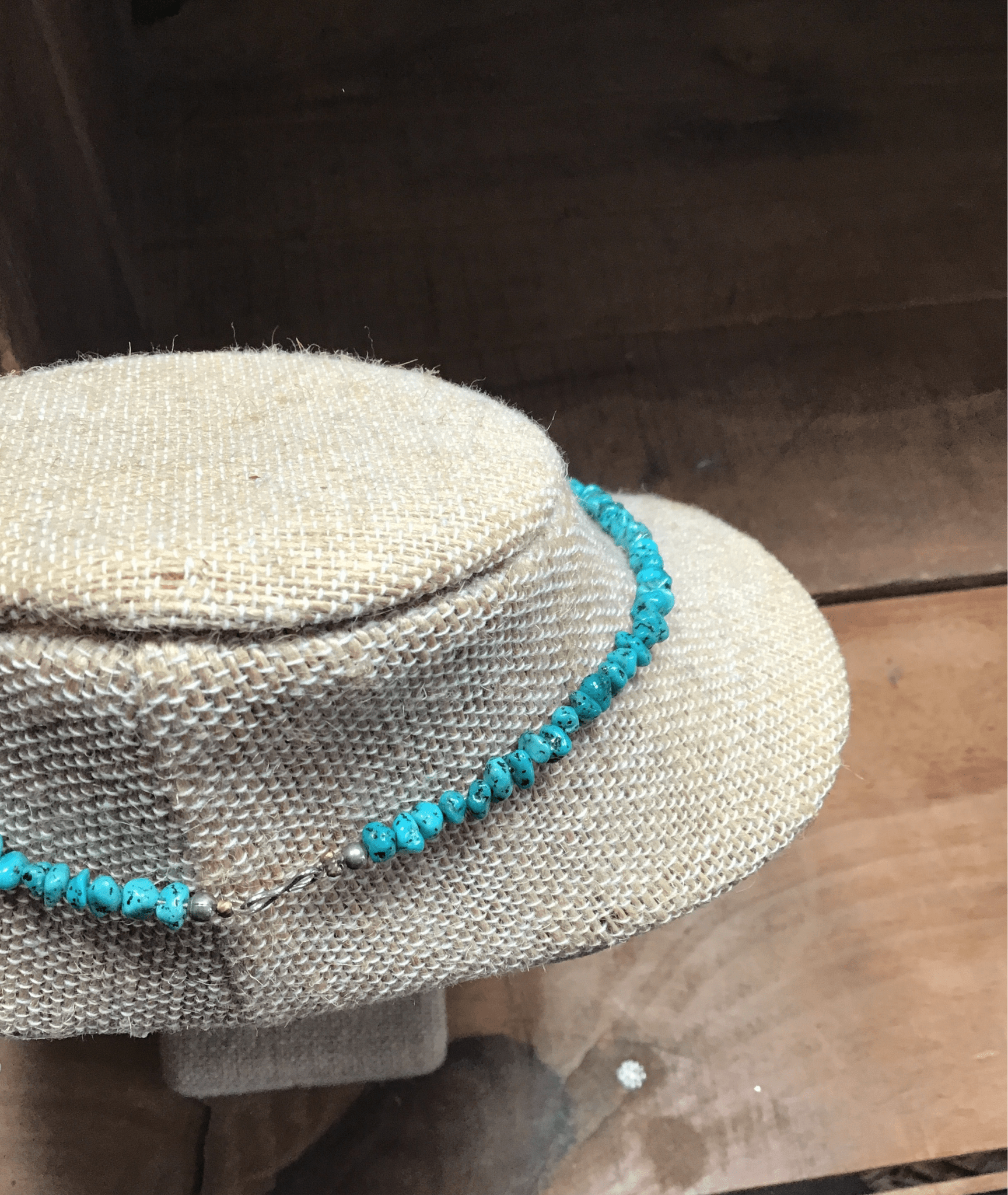 The turquoise beads are handcut into traditional heishi form, adding a natural texture and vibrant color contrast. This necklace captures the timeless spirit of Southwestern jewelry and is perfect for layering with other turquoise or sterling pieces - or wearing as a statement on its own.