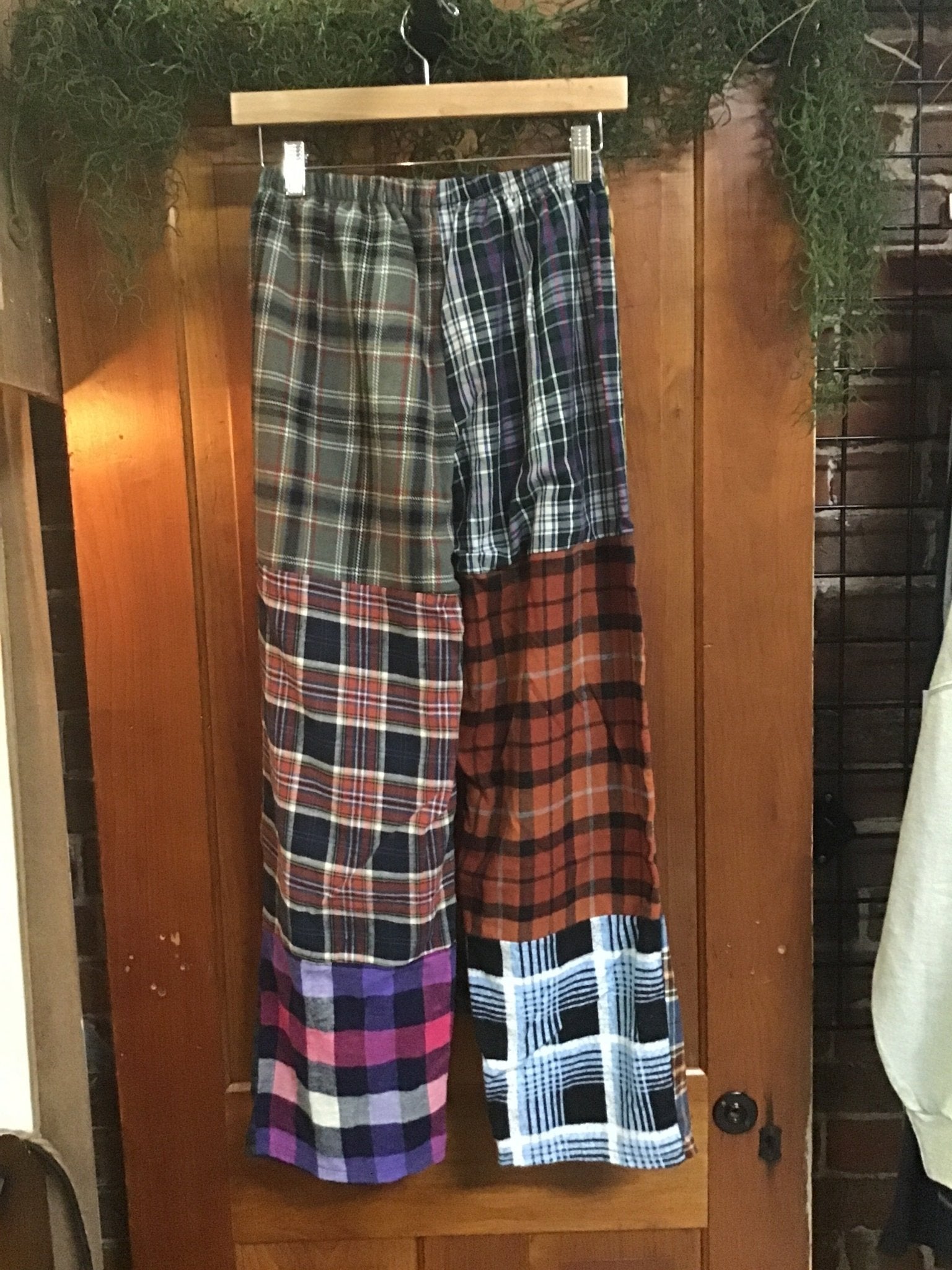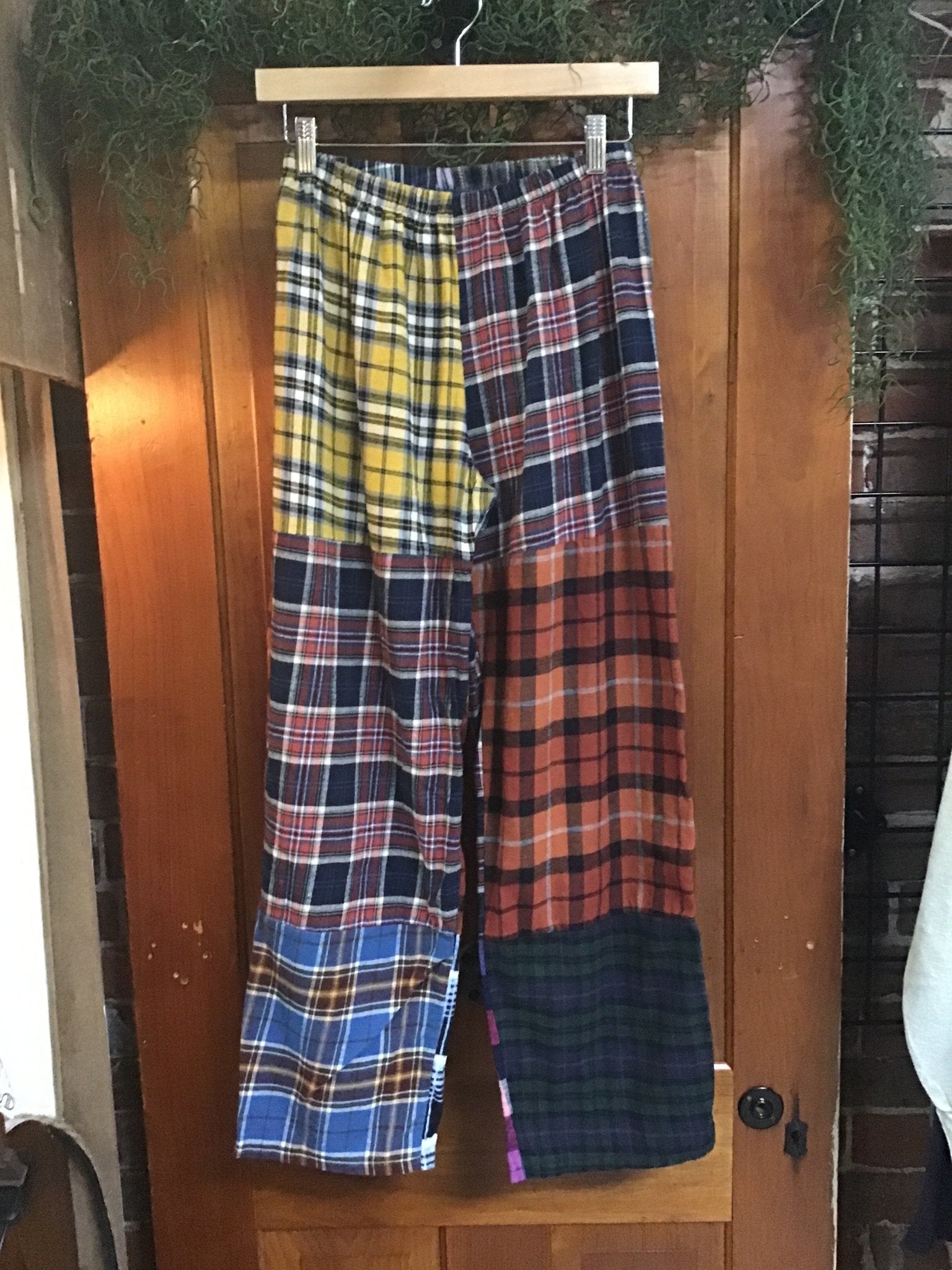 Authentic Vintage Flannel shirts reworked into an elastic waist pant. Each piece is unique and will come with a one-of-a-kind pattern and colors. This pair has yellow & orange plaids on the front.