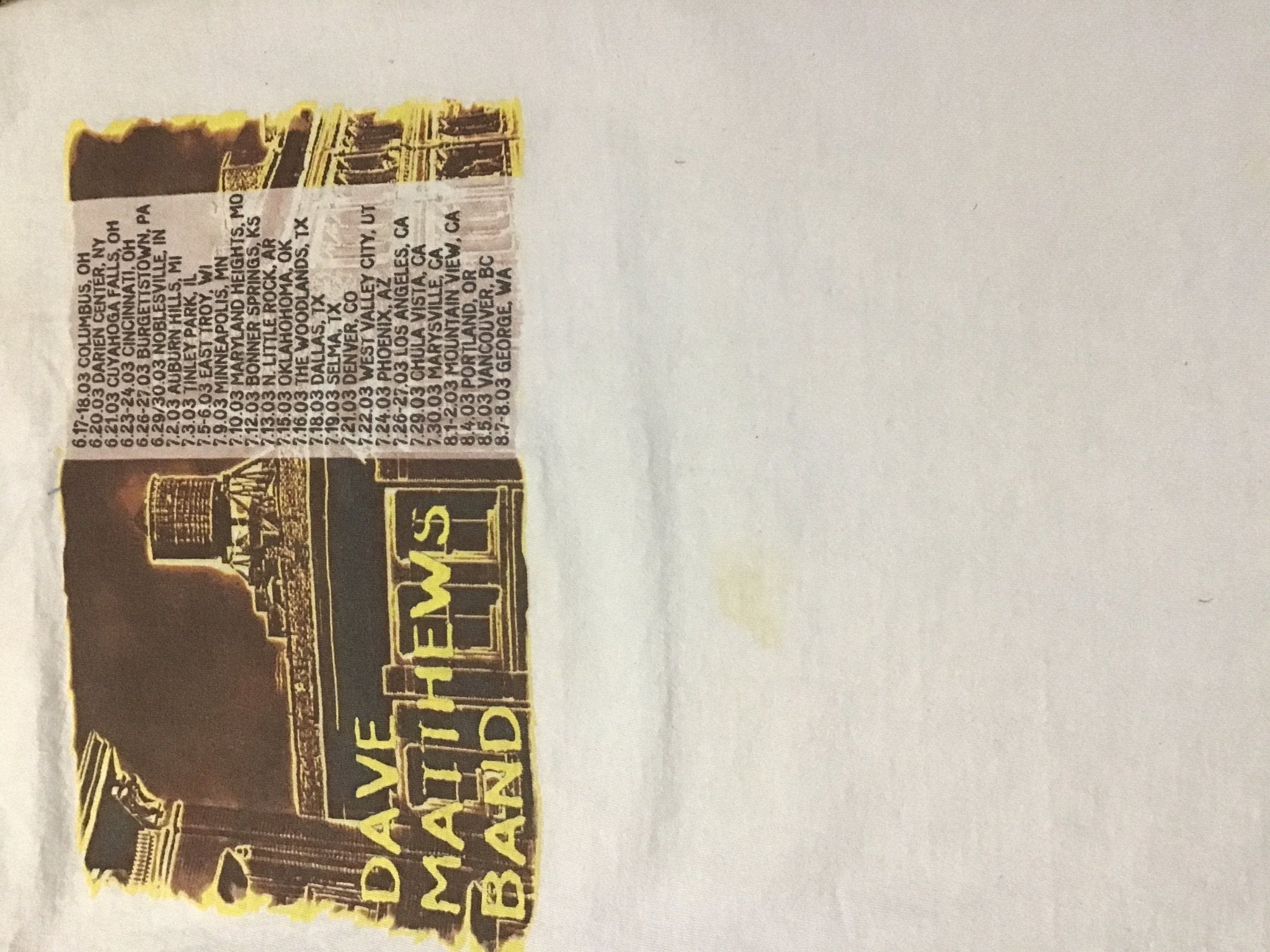 This Dave Matthews Band Summer Tour ‘03 concert tee will surely make you smile ... The sounds of Dave Matthews Band pair well with jeans or cutoffs for your next music festival or concert! There are a few faint stains (shown). This eco-friendly, sustainable statement piece is created from upcycled Kantha quilts -this unique band tee is one of a kind! There is a size on the tee that says medium. The tshirt sleeves were cut off (raw edge) and the kantha edges have been serger finished. We recommend you compare your best-fitting t-shirt measurements with the measurements below: