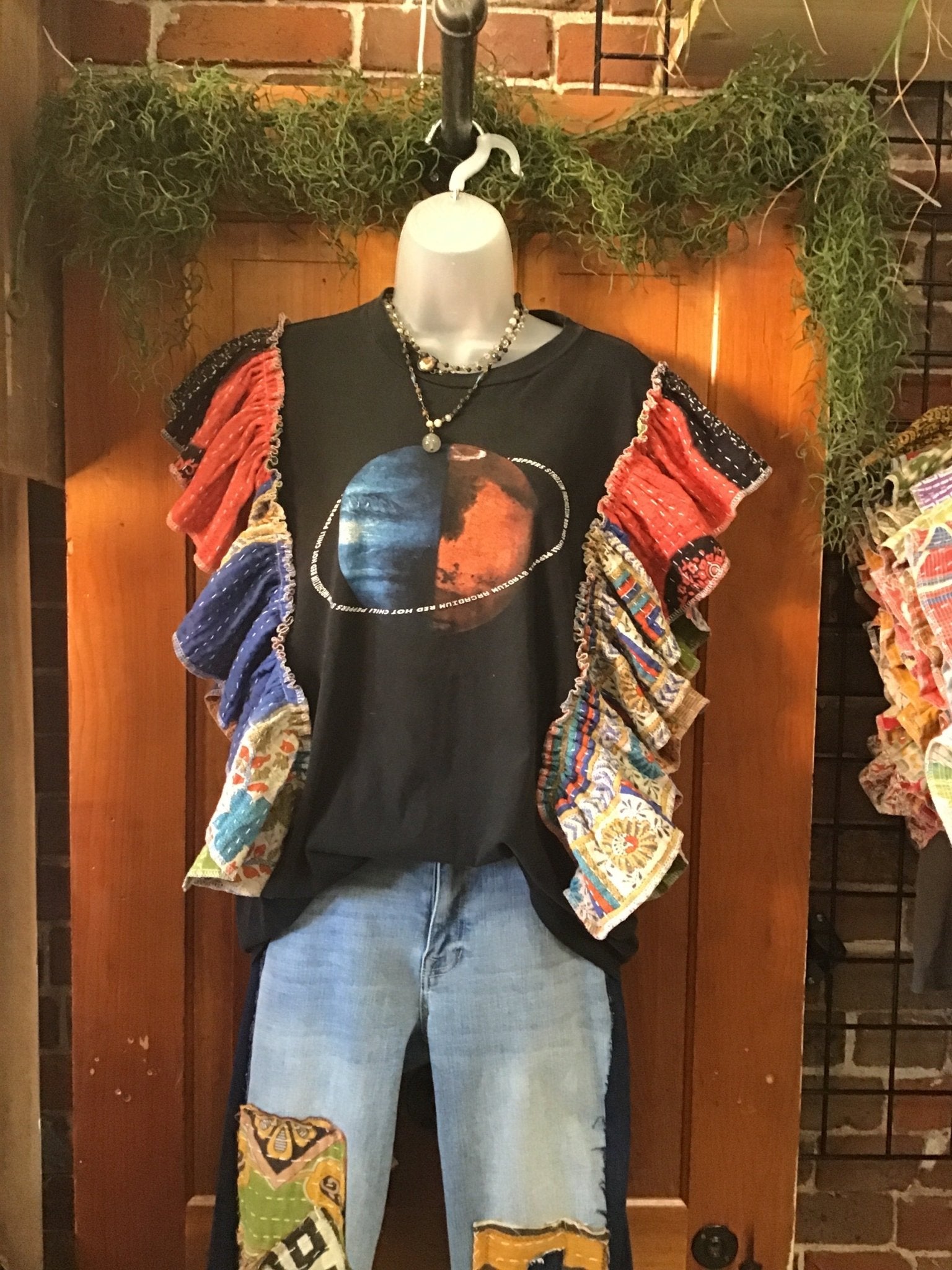 Please remember! All of these Rethreadz creations are HANDMADE and the majority of these tees were thrifted. Therefore, there may be the occasional imperfection that helps tell a story and adds character.