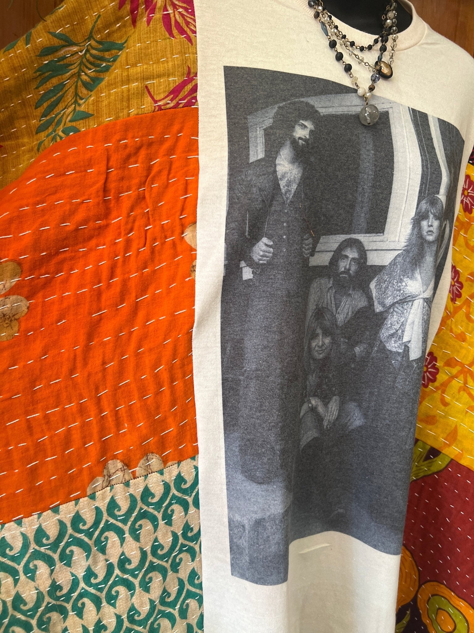 We have an unlimited supply of this Fleet tee shown and this listing will feature MULTI KANTHA PONCHO PANELS similar to the picture shown on this listing but not identical. These Fleetwood Mac pieces will still be one of a kind!