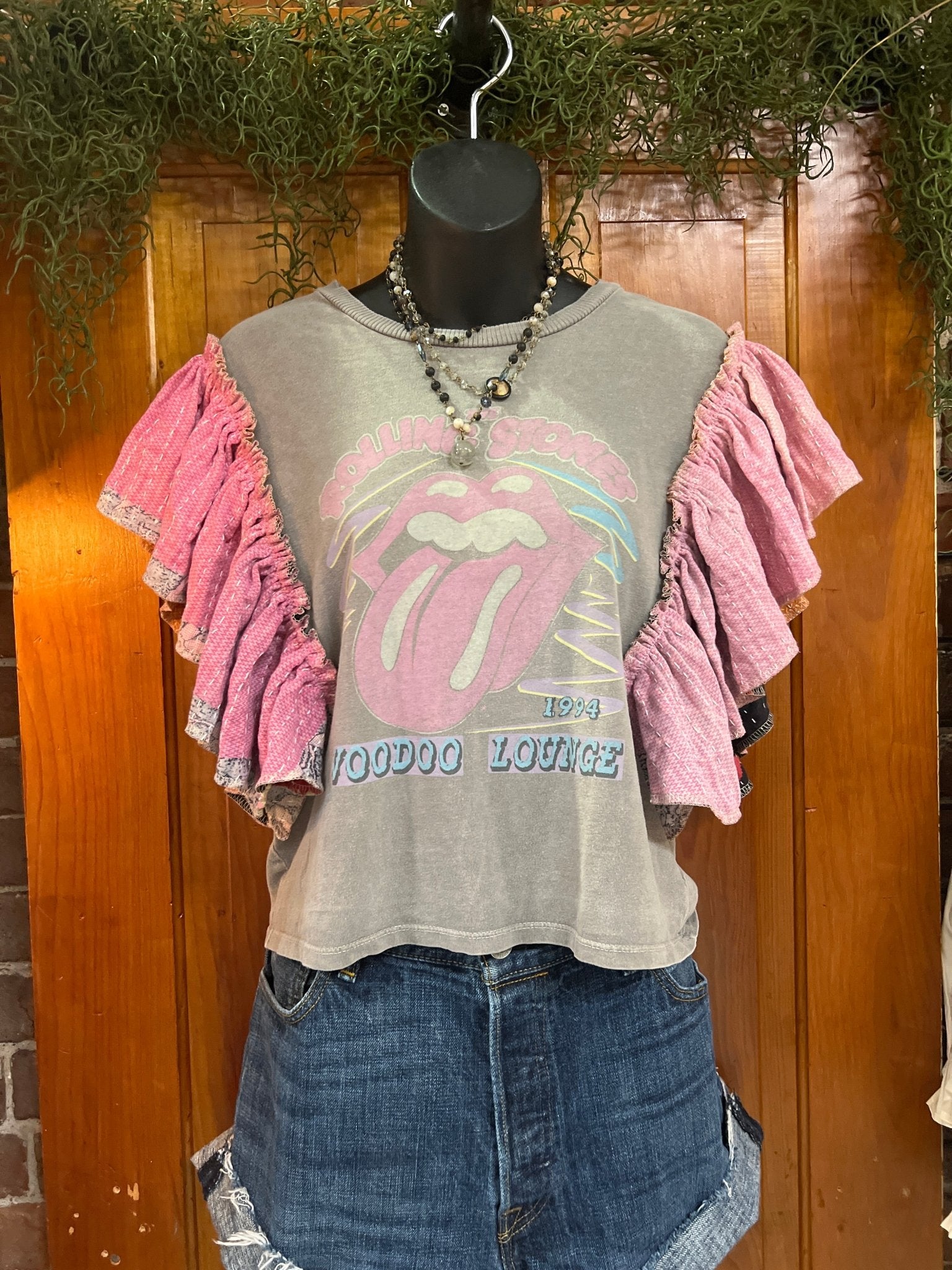 ROLLING STONES Voodoo Lounge ruffle sleeves kantha tee