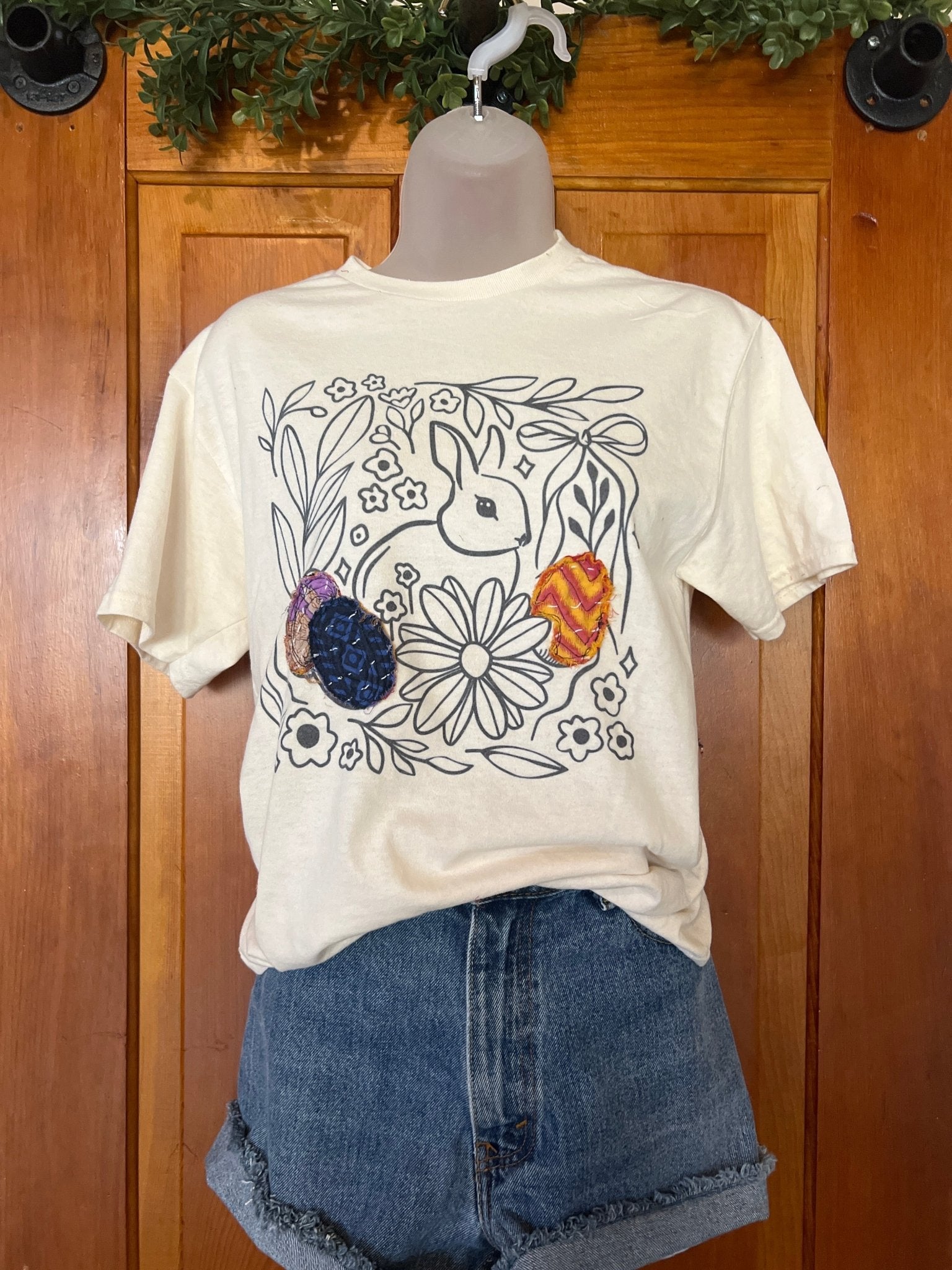 "Add a touch of playful charm to your SPRING WARDROBE  with our DOODLE BUNNY graphic tee. This versatile tee pairs perfectly with any outfit, from camo or leopard  to all the denim colors....