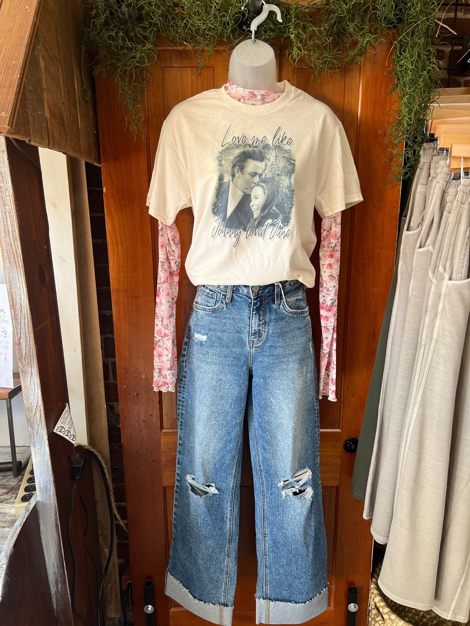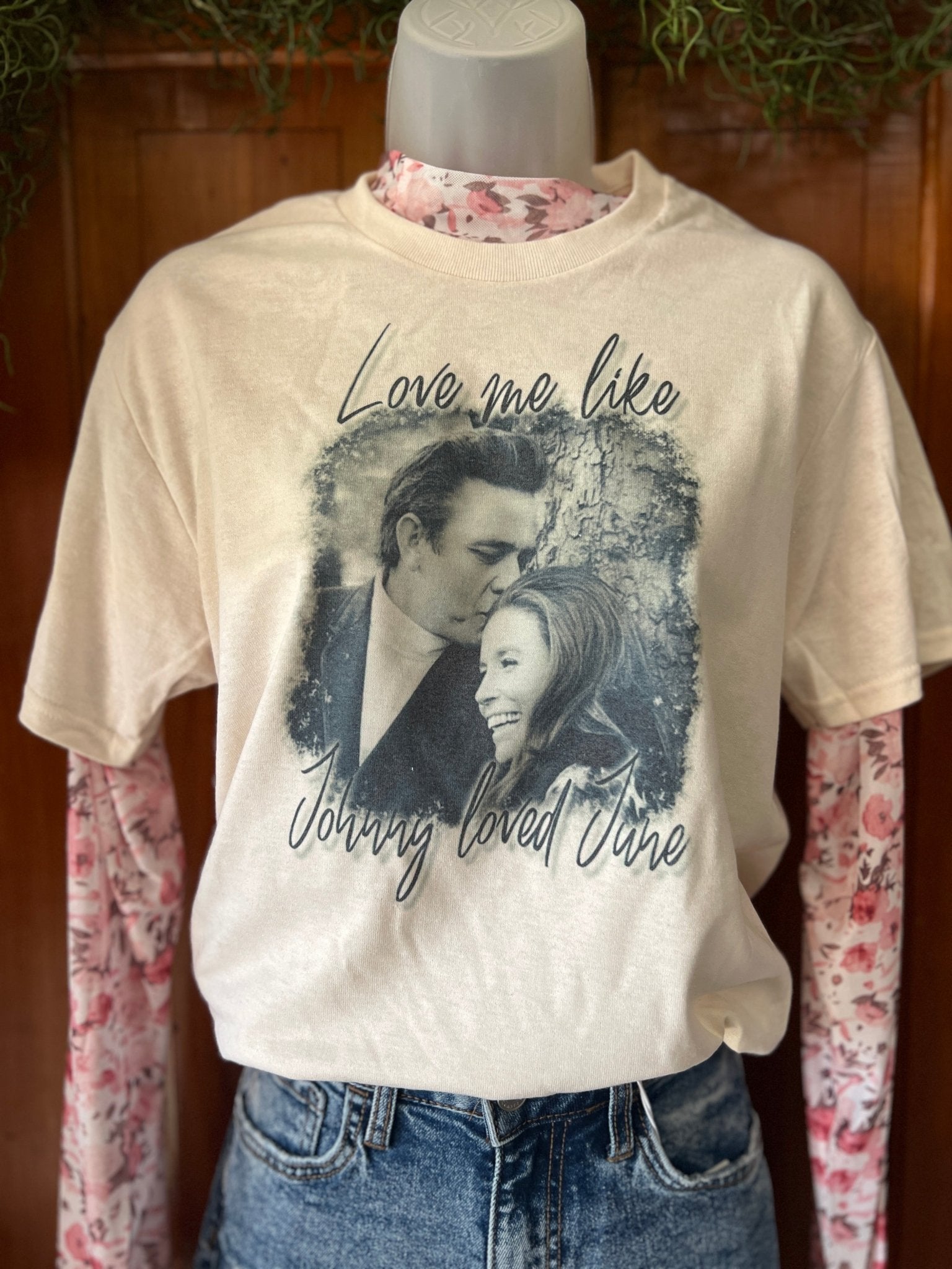 "Add a touch of playful charm and sentiment to your Valentine wardrobe with our "Love me like Johnny loved June" graphic tee. This versatile tee pairs perfectly with any outfit, from camo or leopard to all the denim colors....