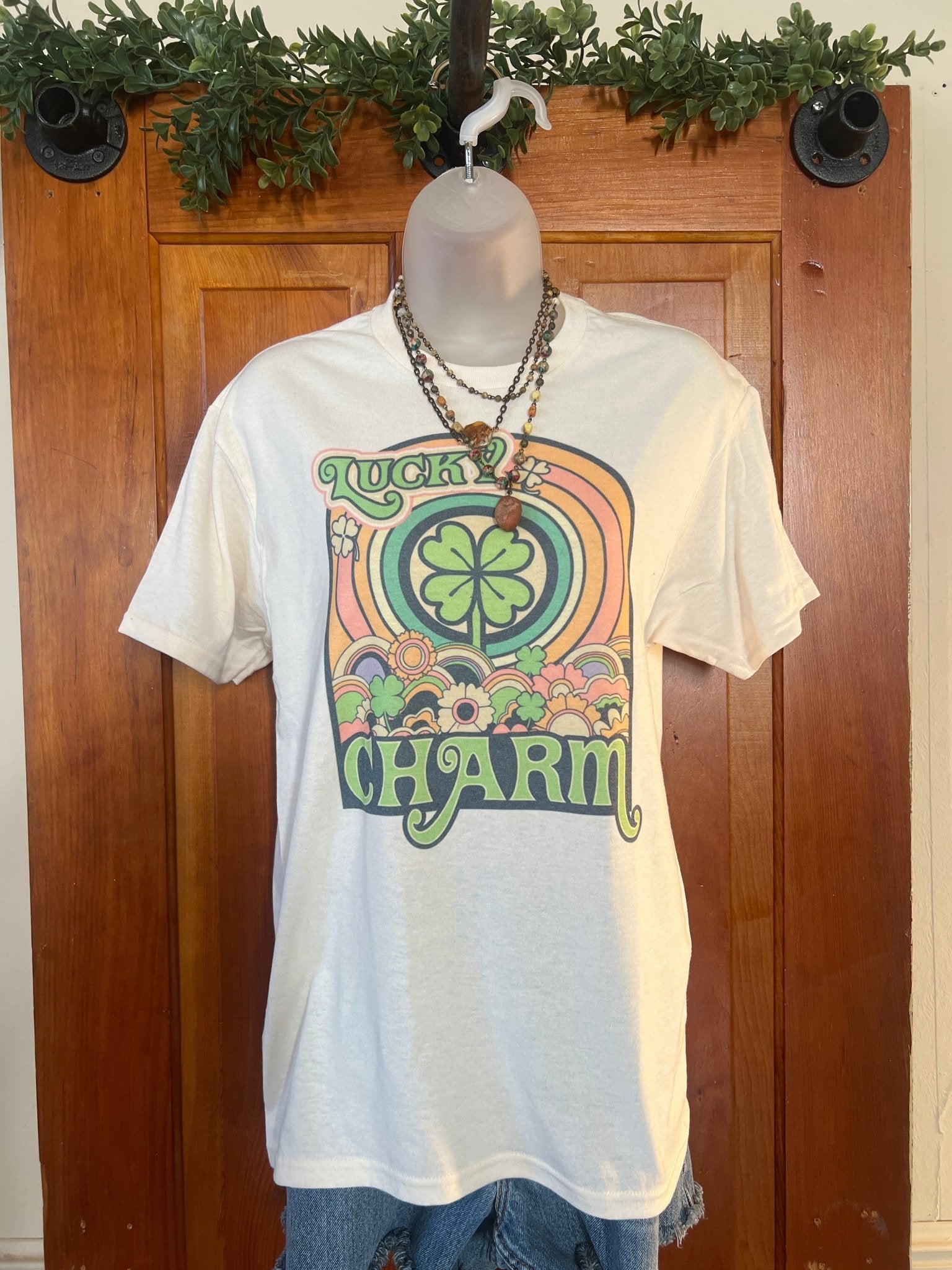 Beautiful sublimated image on a 50 poly/ 50 cotton off-white/cream-colored tee.