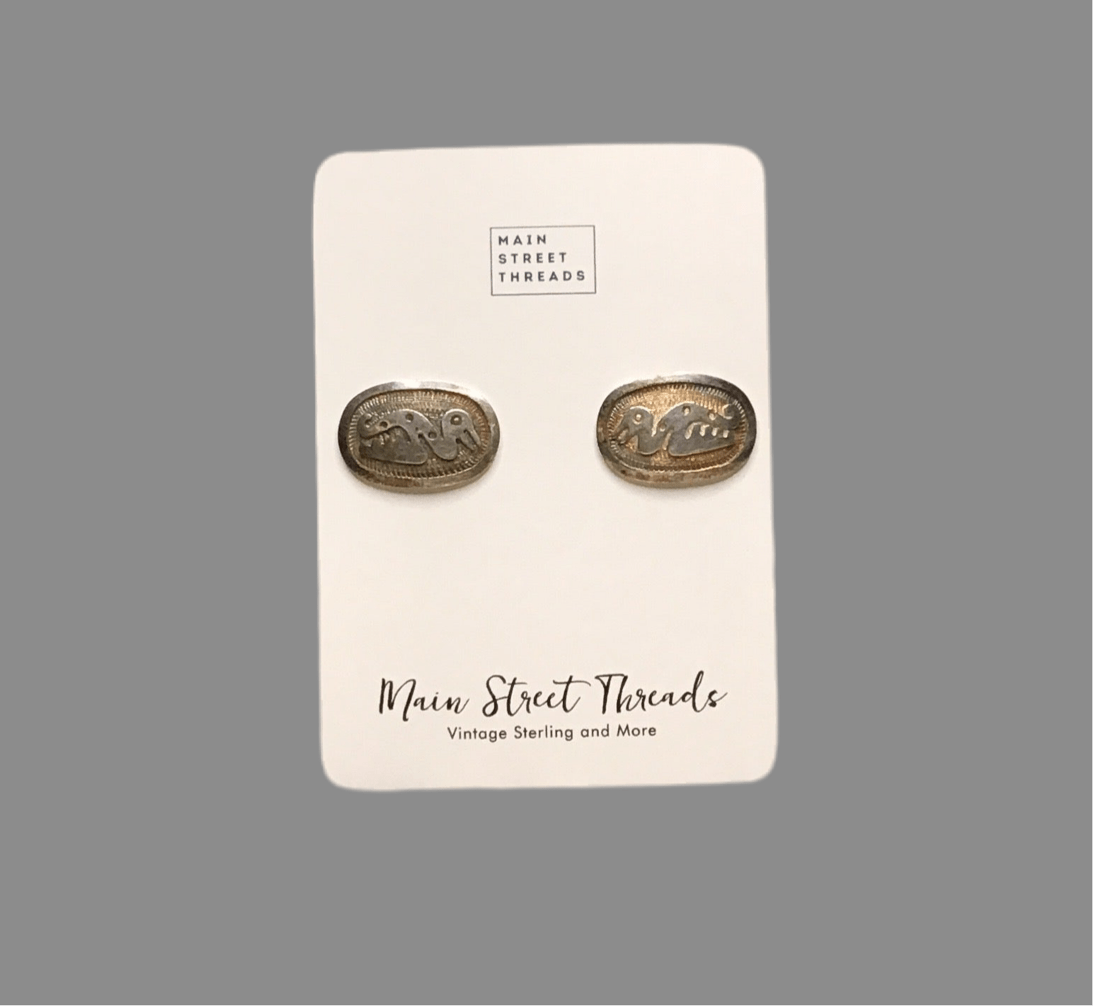 Vintage Sterling Silver Aztec/Mayan Bird motif textured Stud Earrings