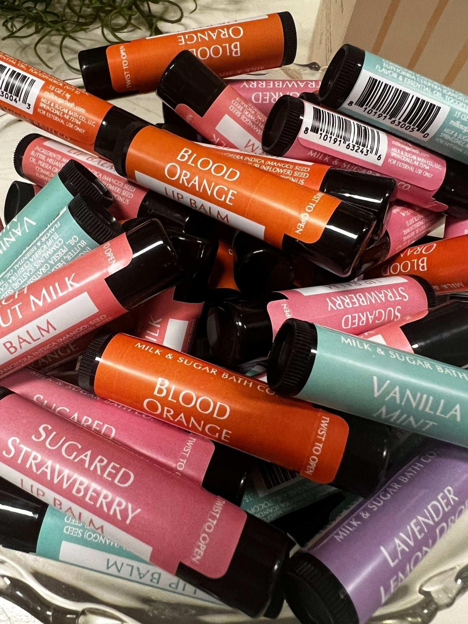 INGREDIENTS: Mangifera Indica (Mango) Seed Butter, Helianthus Annuus (Sunflower) Seed Oil, Persea Gratissima (Avocado) Oil, Ricinus Communis (Castor) Seed Oil, Beeswax, Euphorbia Cerifera (Candelilla) Wax, Flavor Oil, Tocopherol (Vit E)