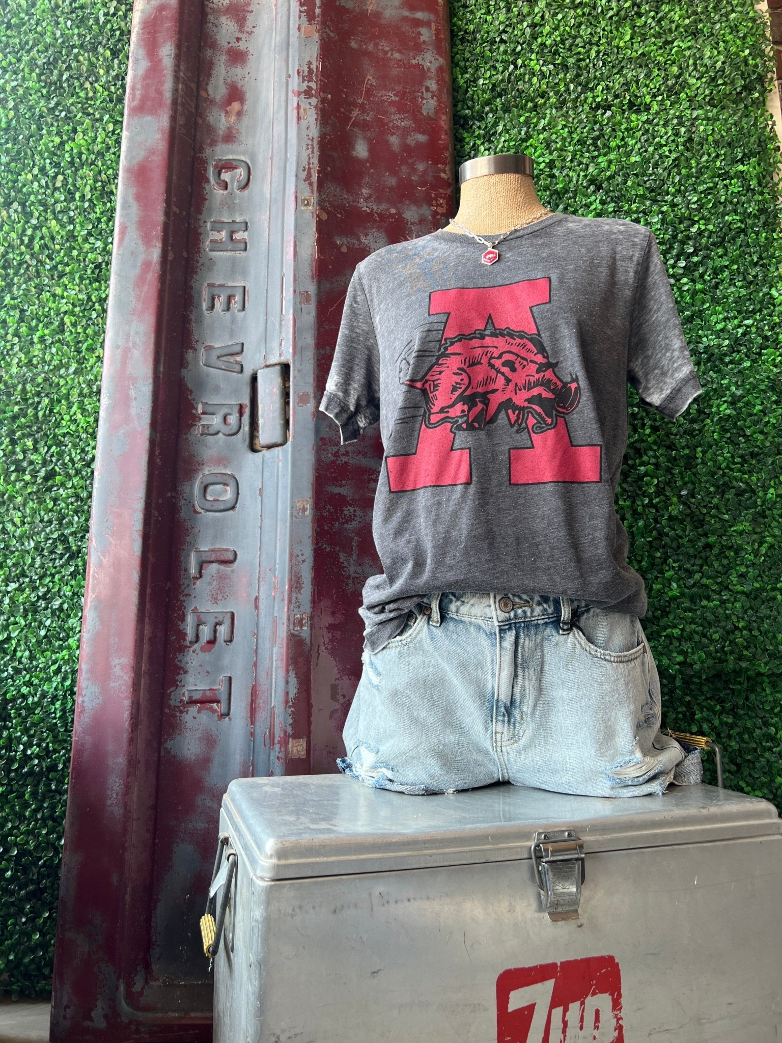 Printed in Fayetteville, Arkansas – home of the University of Arkansas Razorbacks. Many of our tees are vintage logos, which make them unique. Perfect for game day or any Razorback fan wanting to represent their team. We offer these designs on quality products for your comfort.